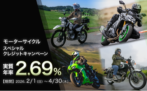 いまだけ「実質年率2.69%」のスペシャルクレジットをご用意。カワサキモーターサイクルを楽しむチャンス。